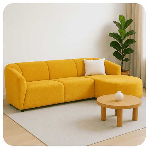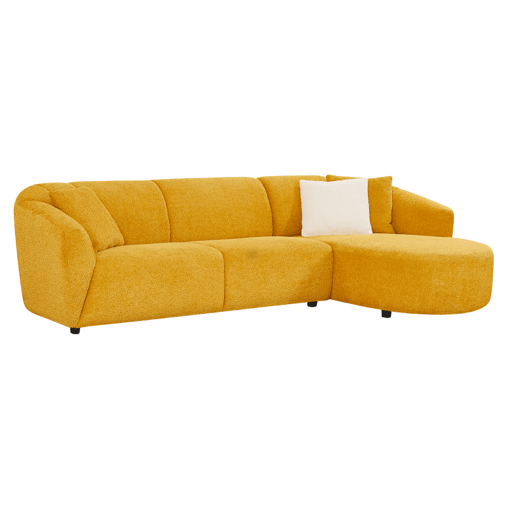 Canapé d’angle 4 places jaune en tissus microfibre :