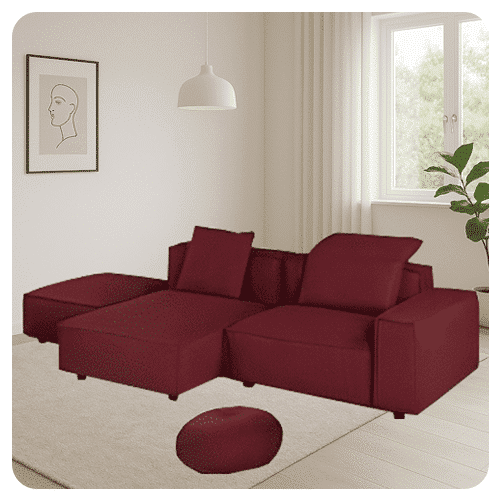 -Canapé d’angle spacieux avec pouf assorti pour un confort optimal