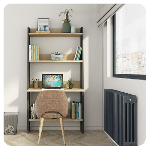 – Étagère 4 niveaux avec bureau intégré, pratique et compact