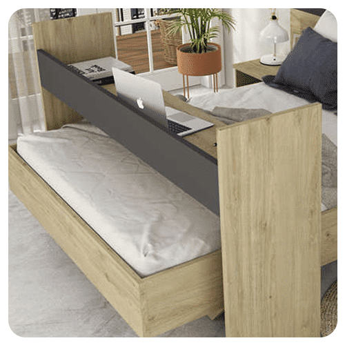 -Finition bois clair apportant chaleur et modernité à la chambre