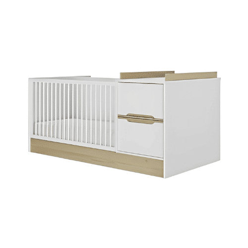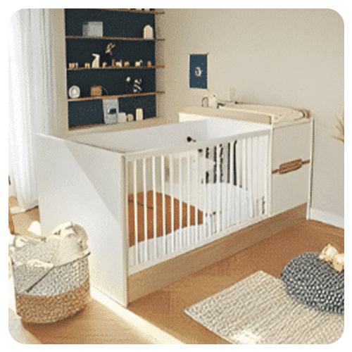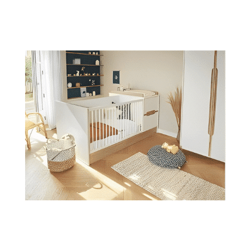 1 barrière, 1 rangement ,2 tiroirs, 1 plan a langer ,1 tiroir, 1 tube penderie,