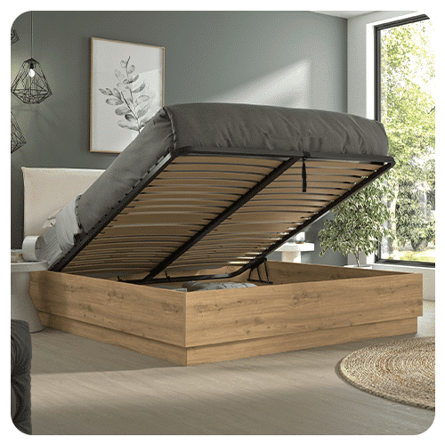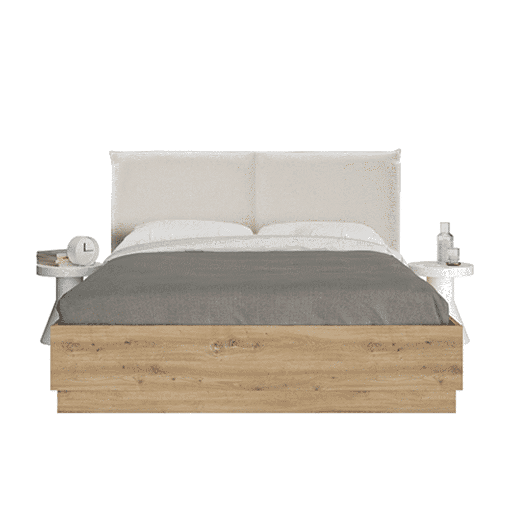 - Bois clair et tissu beige pour une ambiance moderne et cosy