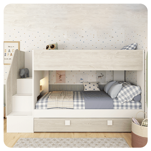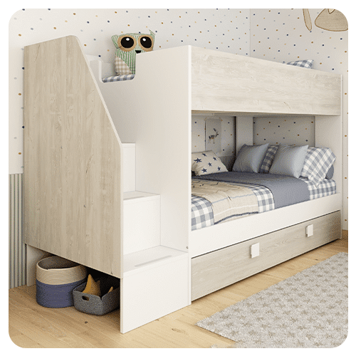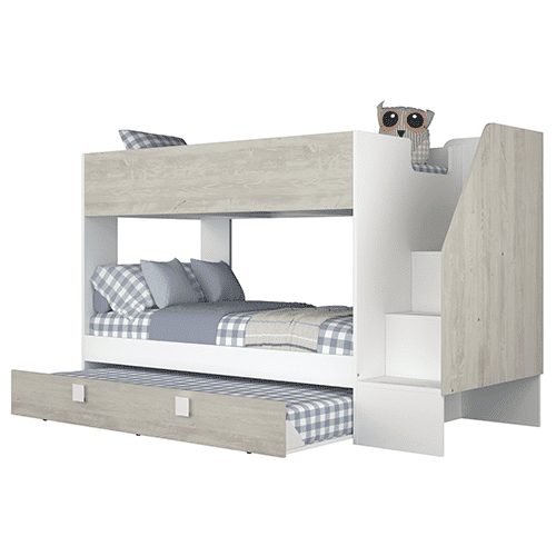 – Optimisez l’espace avec un lit superposé et un lit gigogne intégré