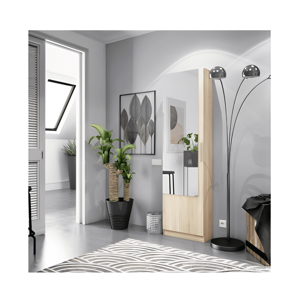 -Armoire à chaussures haute avec porte miroir intégrée