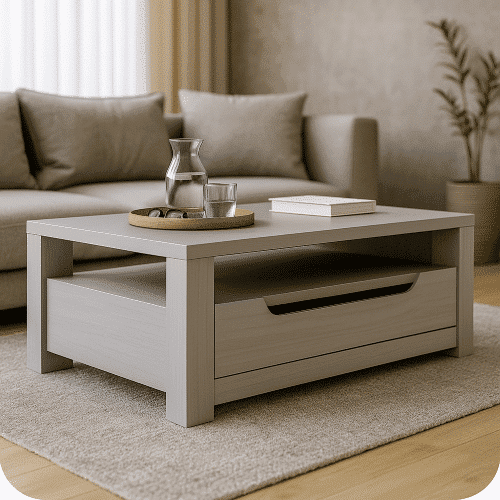 Table basse finition chêne  lagune  gris  clair